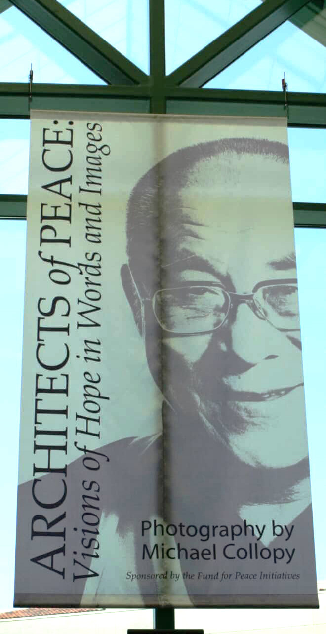 I collaborated with world-renowned portrait photographer Michael Collopy on the production of his Architects of Peace photo exhibition, which debuted in 2000 at Stanford University’s Tresidder Memorial Union, where it remains on view today(as of this writing). The exhibition accompanied the release of Collopy’s book of the same name—an international project dedicated to promoting global unity by highlighting influential peacemakers and mentors whose work inspires positive action worldwide.