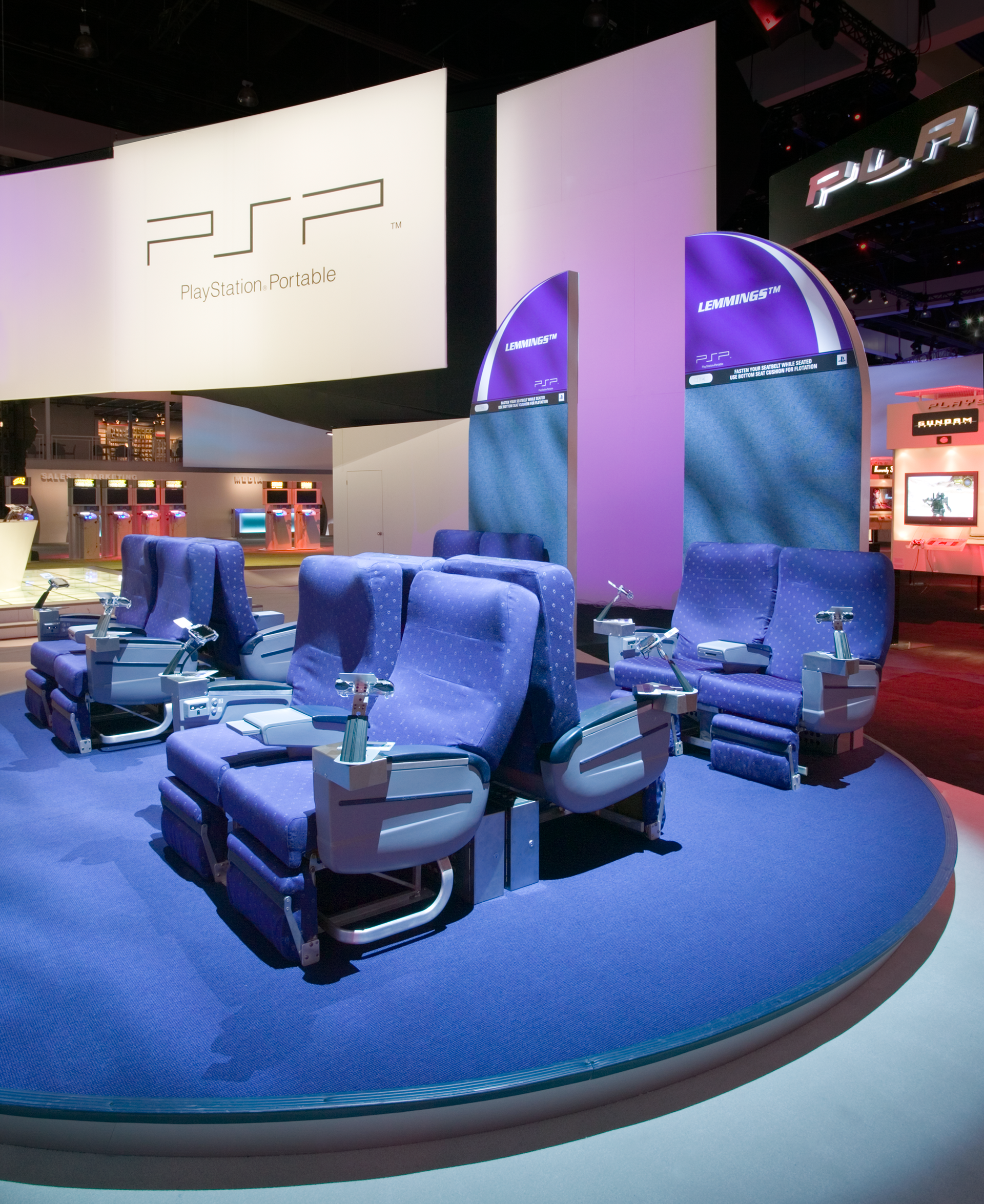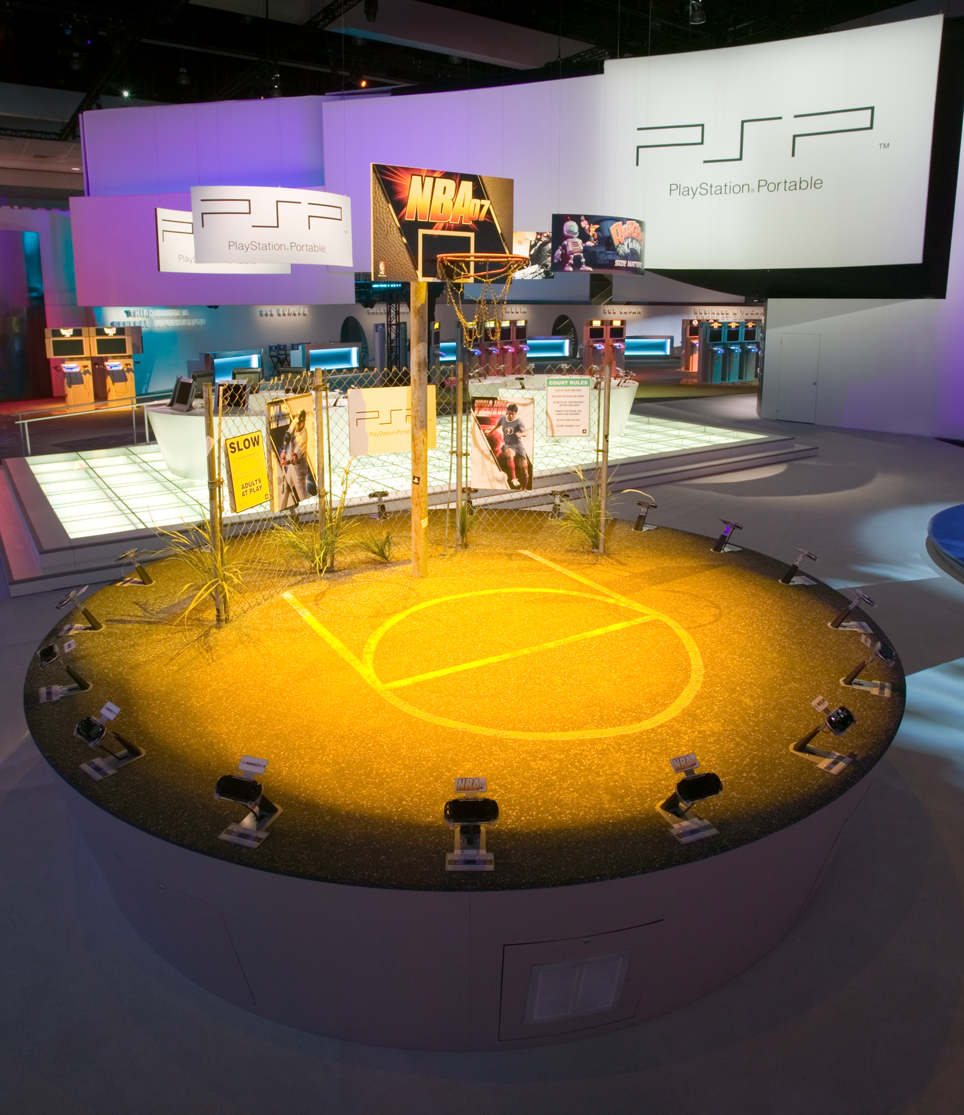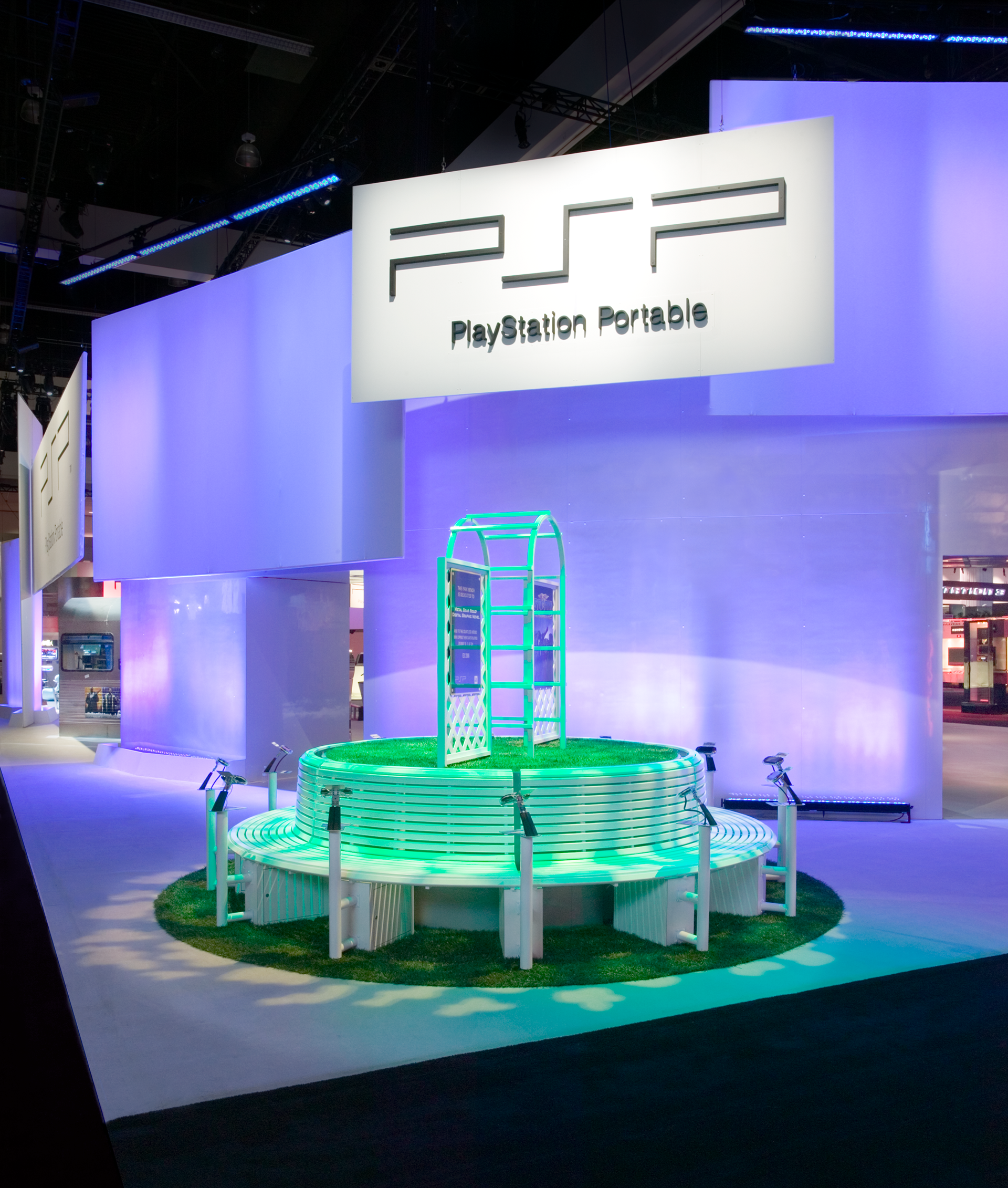 At E3 2005, my design studio "Blue Fog Design, Inc." was commissioned by Sony in which I collaborated with renowned exhibit designer Mitchell Mauk to create the “Slices of Life” themed signage for the PlayStation Portable (PSP) exhibit. Each area within the space was uniquely branded to highlight different facets of everyday life, reinforcing the mobility, versatility, and on-the-go entertainment that defined the PSP handheld platform.