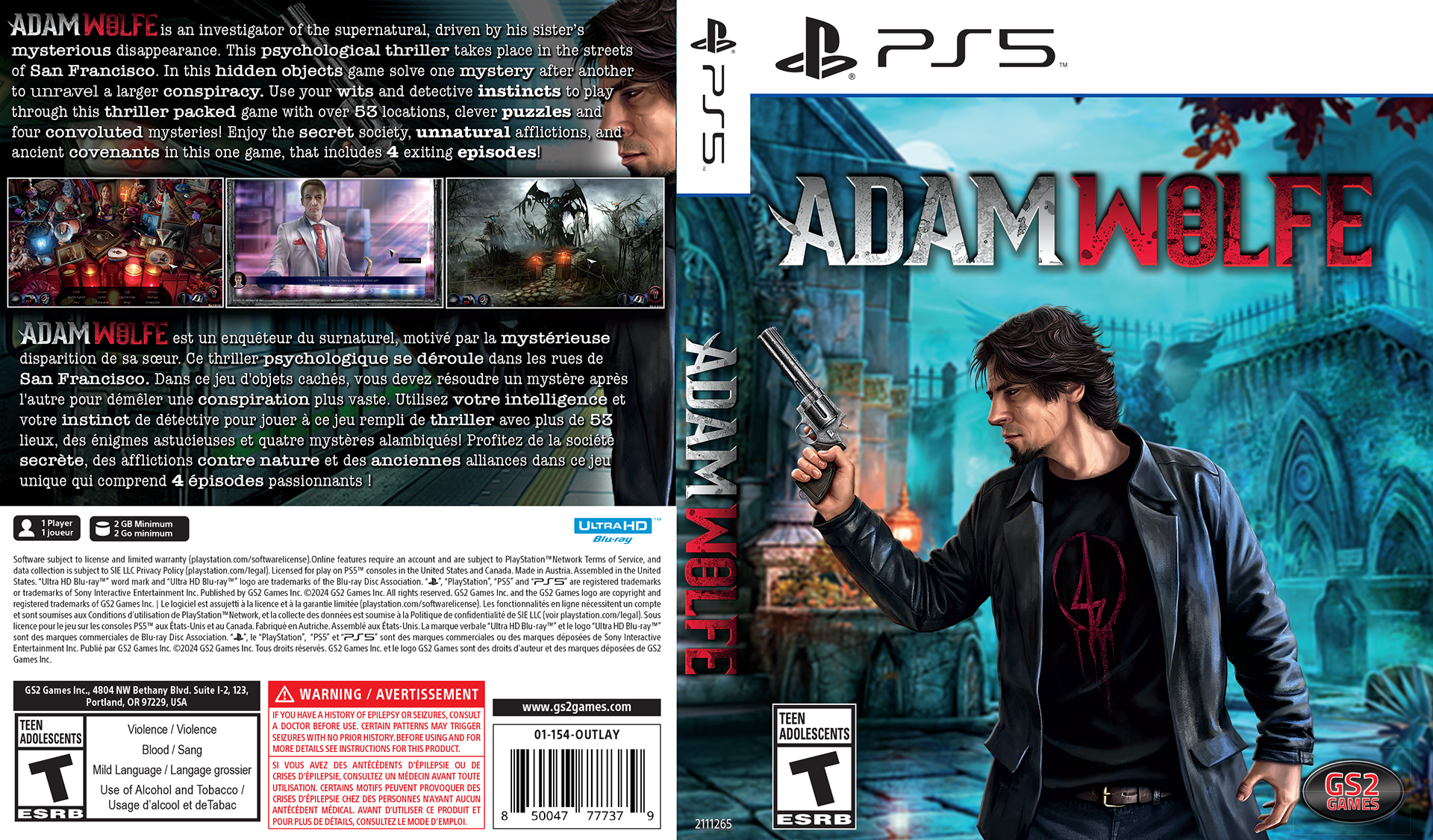 Design & Production - Here are more samples of PlayStation® 4 retail packaging sleeves for GS2 Games. Like the PS 5 covers above, these were also created for the US and Canadian markets with dual language marketing text on back.