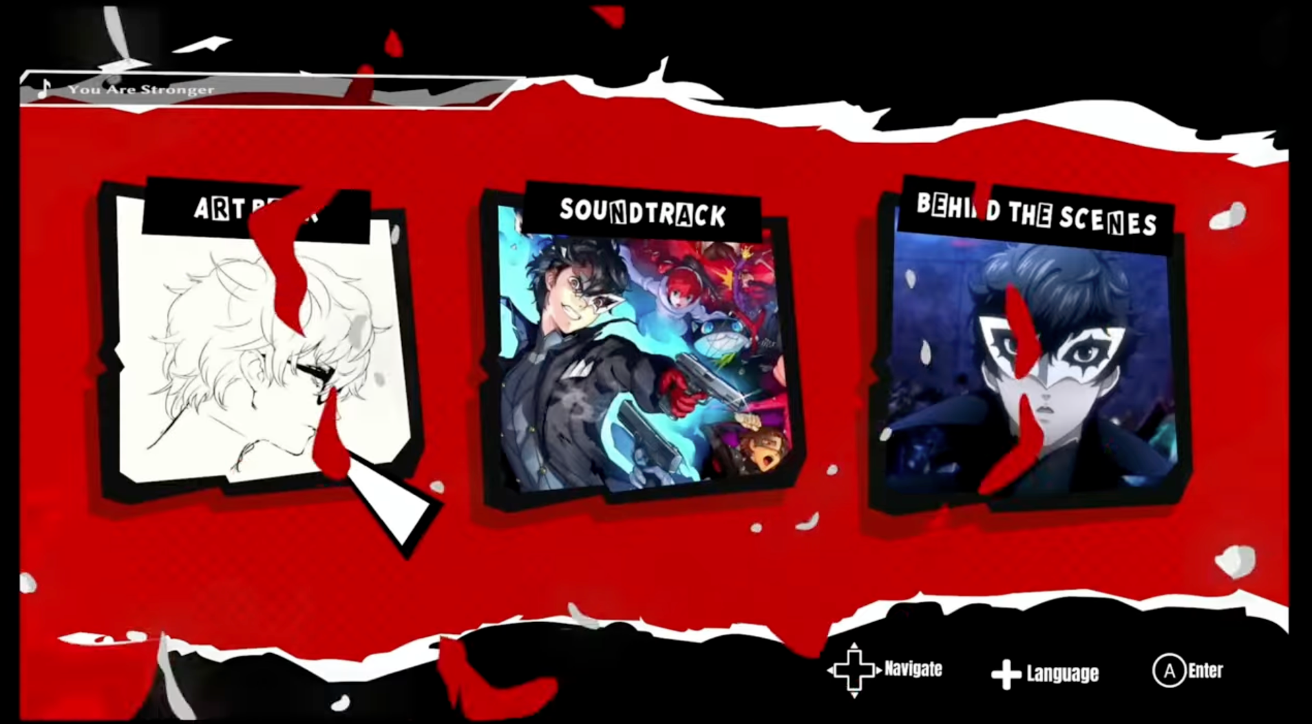 A multi-content companion app offering pre-order customers three premium experiences in one: a digital artbook featuring concept art and character designs, a curated in-app soundtrack including tracks "You Are Stronger," "Strikers," and "Daredevil," and an exclusive ~67-minute behind-the-scenes video documenting the production of the opening song. All three experiences were accessible through a unified home interface designed to reflect the bold visual identity of the Persona 5 franchise.
